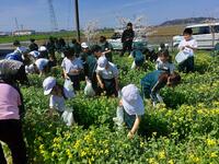 地域の方から、「なおけ」の収穫方法を教えていただき、みんな袋いっぱいに収穫していました。