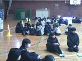 明日の「6年生を送る会」に向けて、1年生から5年生が体育館に集まり、準備を行いました。