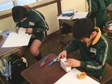 4年生は、立体を実際に作る作業に挑戦中です。これまでの学びを生かしながら、ていねいに組み立てていました。