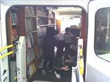 一方、低学年の子どもたちは、大休みの時間に移動図書館「あじさい号」で本を借りていました。